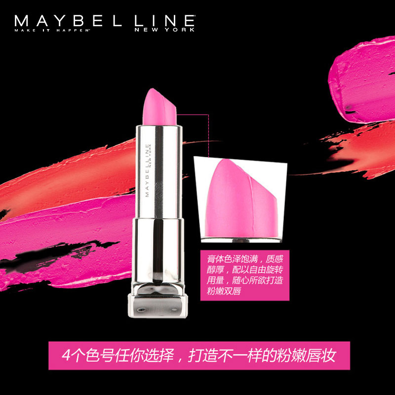 商品名称:美宝莲绝色持久唇膏 粉红警报 魅惑炫亮润泽 唇彩口红